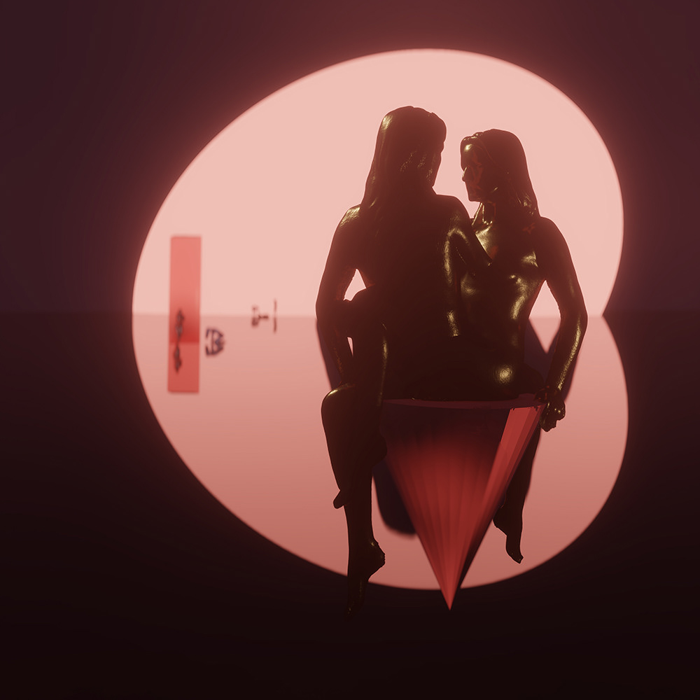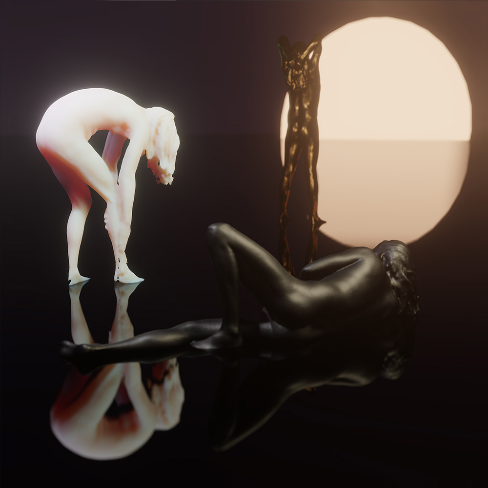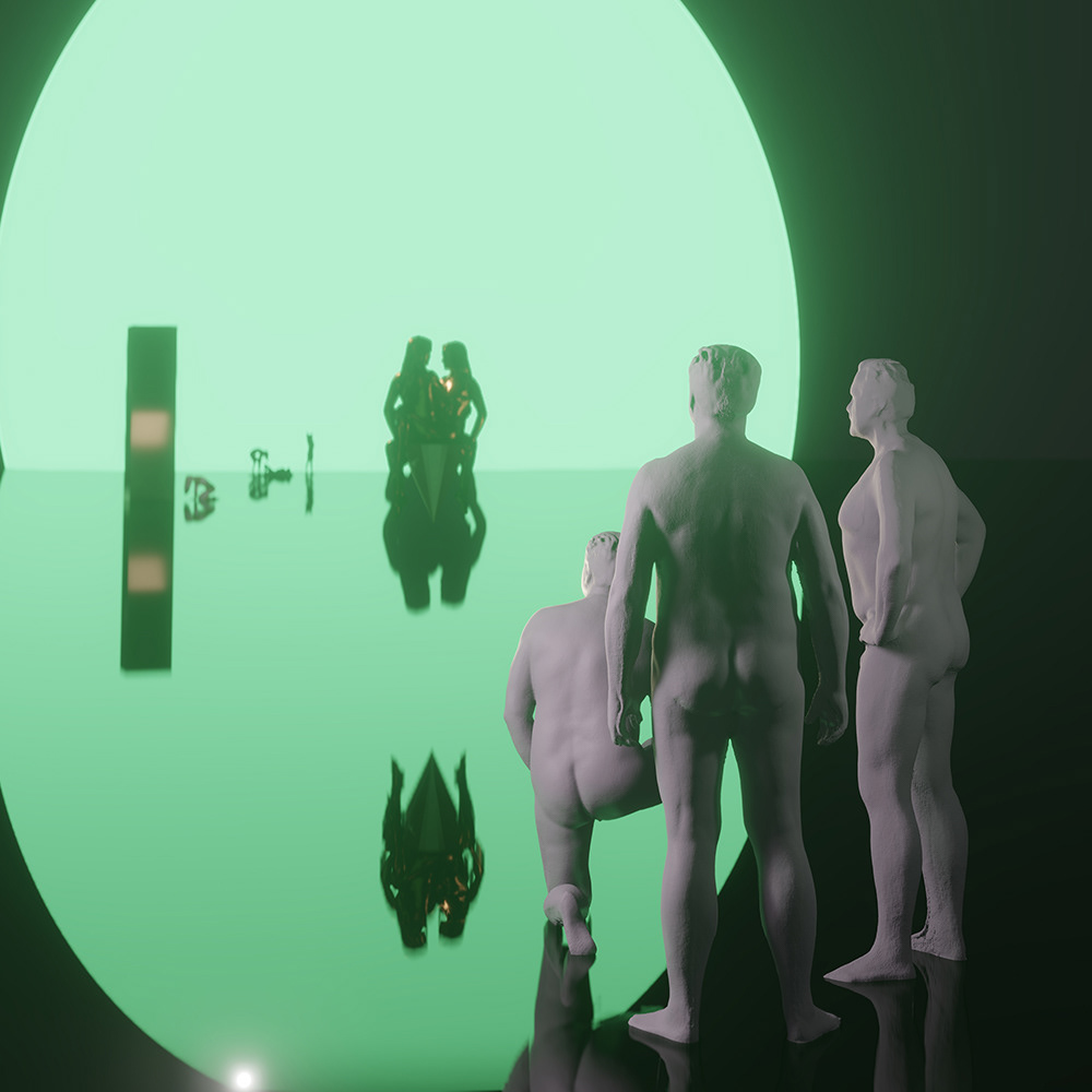 bb_(2021) virtual reality environment & digital print project virtual landscape populated with audio-reactive 3D figure photographs and sculpture.