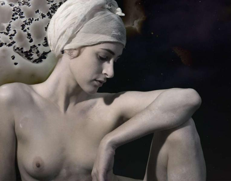 A 3 hour video loops in a window frame suspended in the gallery over astroturf and pillows. The accompanying photographs feature figurative imagery that was abstracted into the video installation.